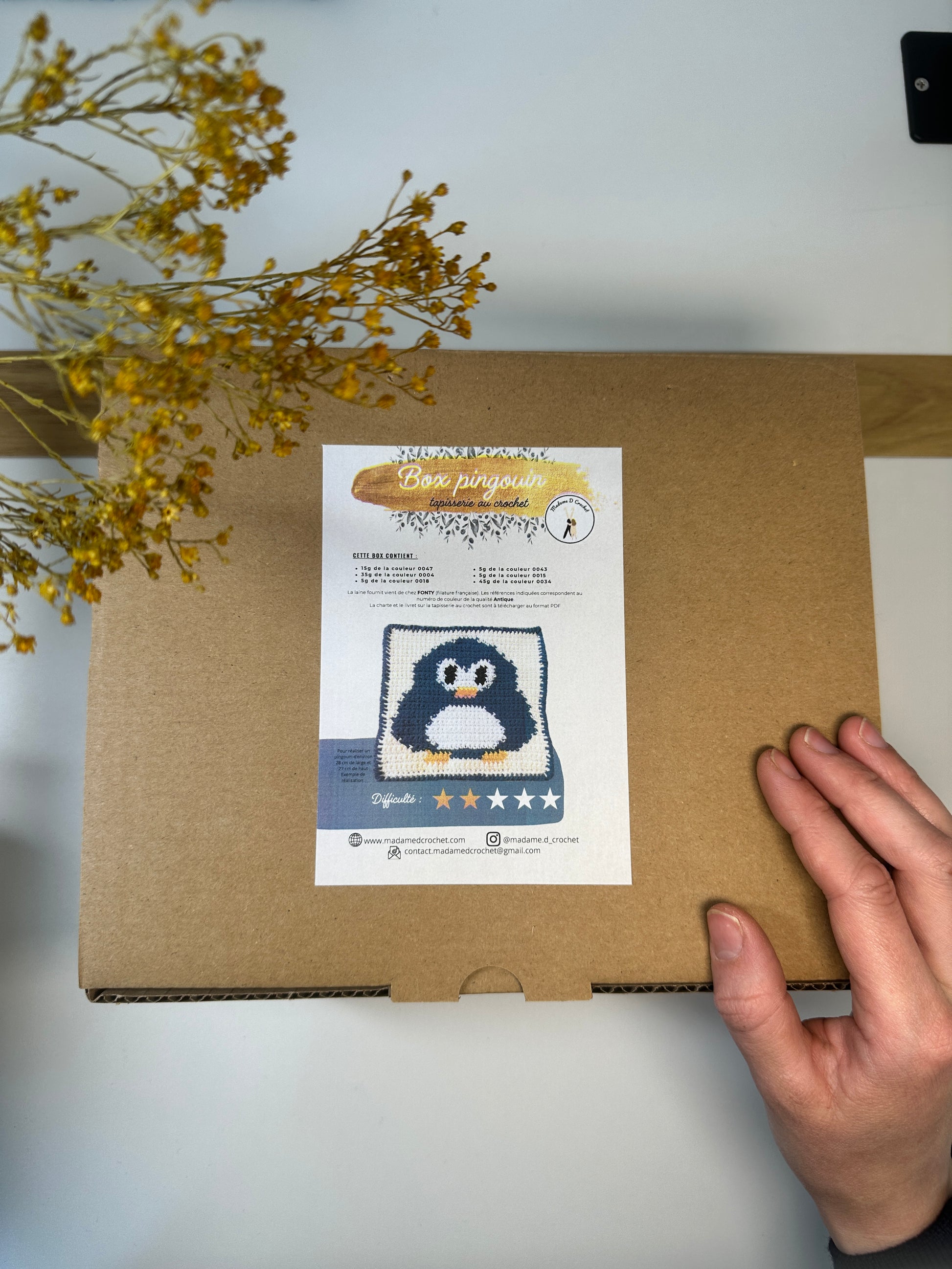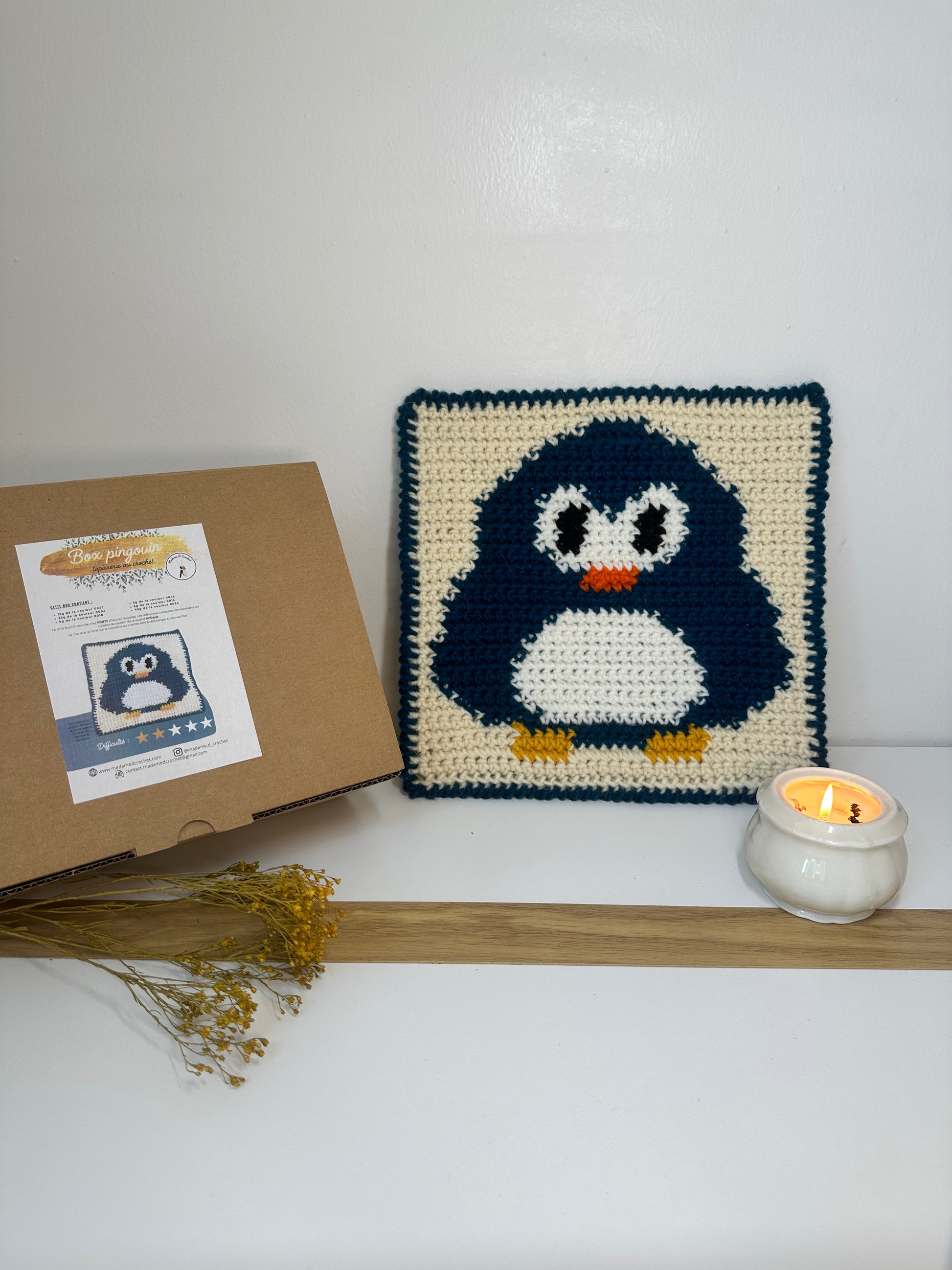 Réalisez une tapisserie pingouin avec la Box créative Madame D Crochet.