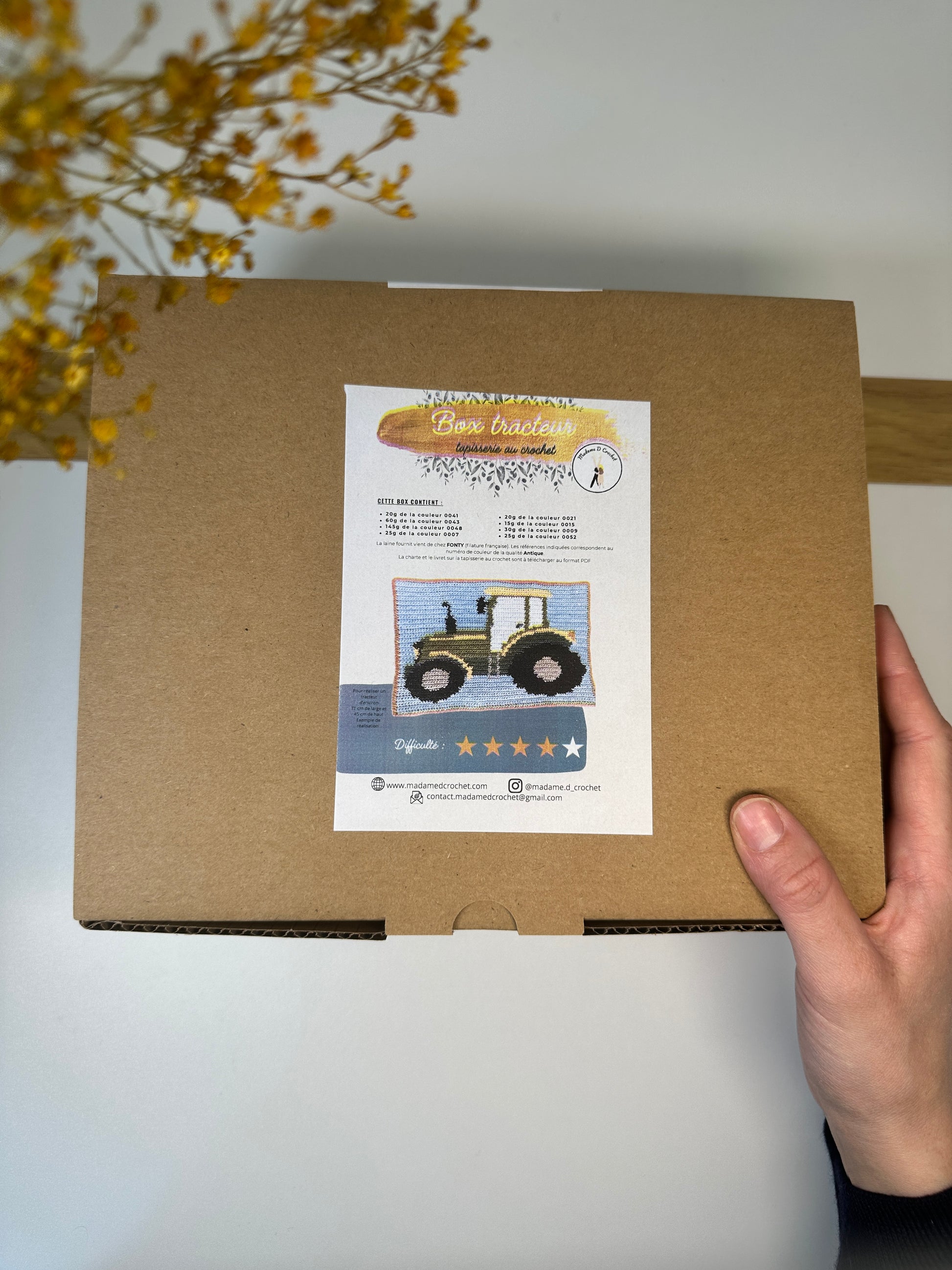 Réalisez une tapisserie tracteur avec la Box créative Madame D Crochet.