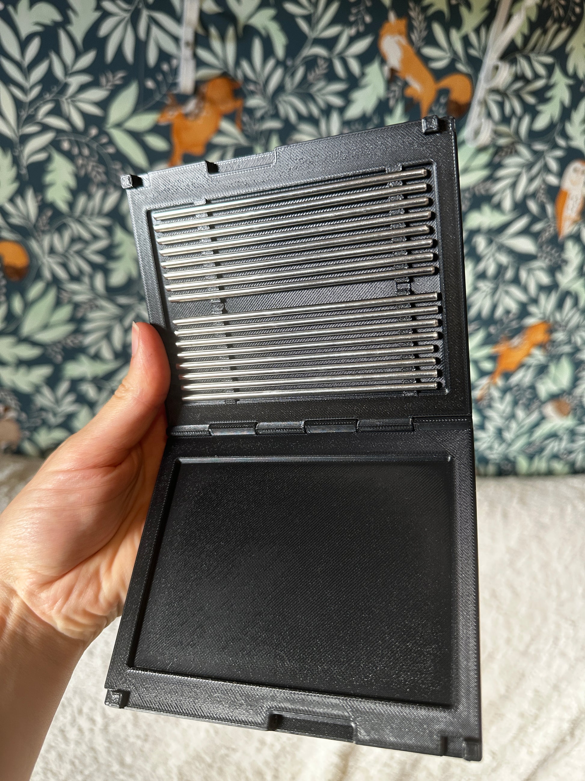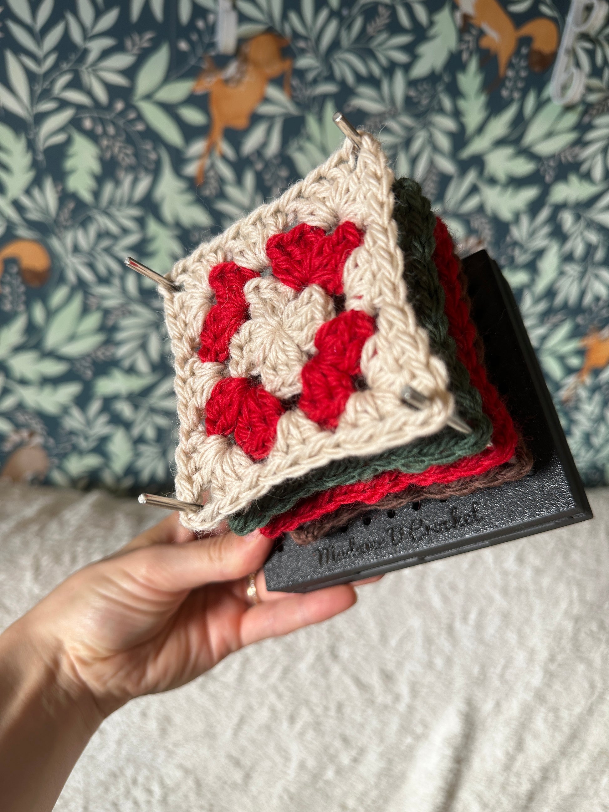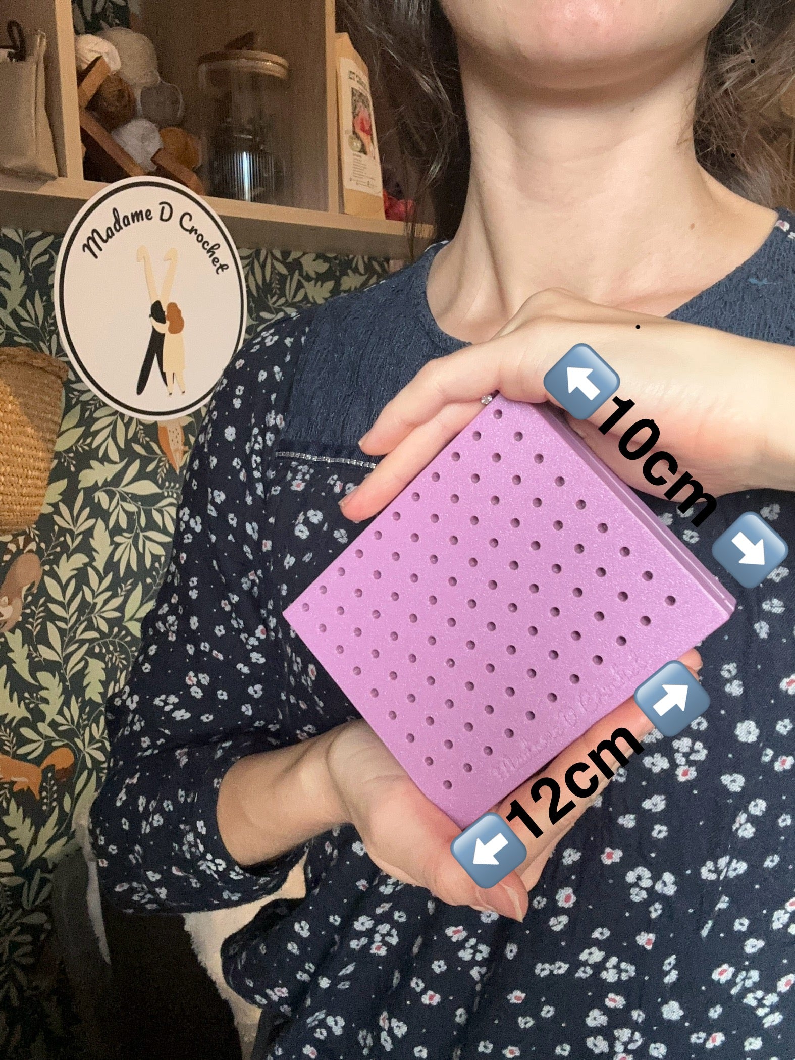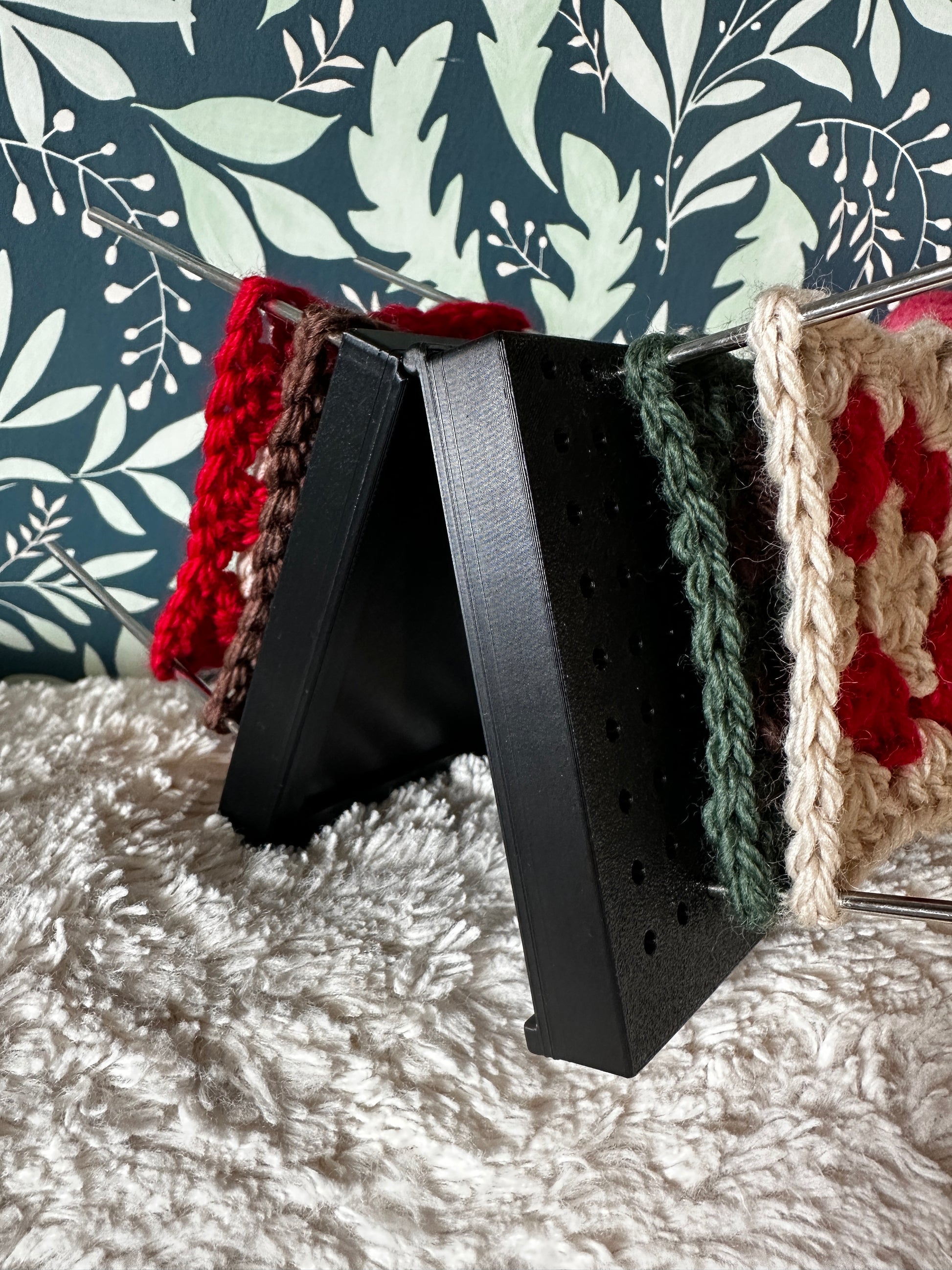La mini planche de blocage pour granny squares Voyage possède un rangement pour les 16 barres en inox de 10cm chacune inclus. Vous pouvez utiliser la totalité de la planche en la dépliant complètement ou bien la laisser fermée pour utiliser la moitié de sa surface.