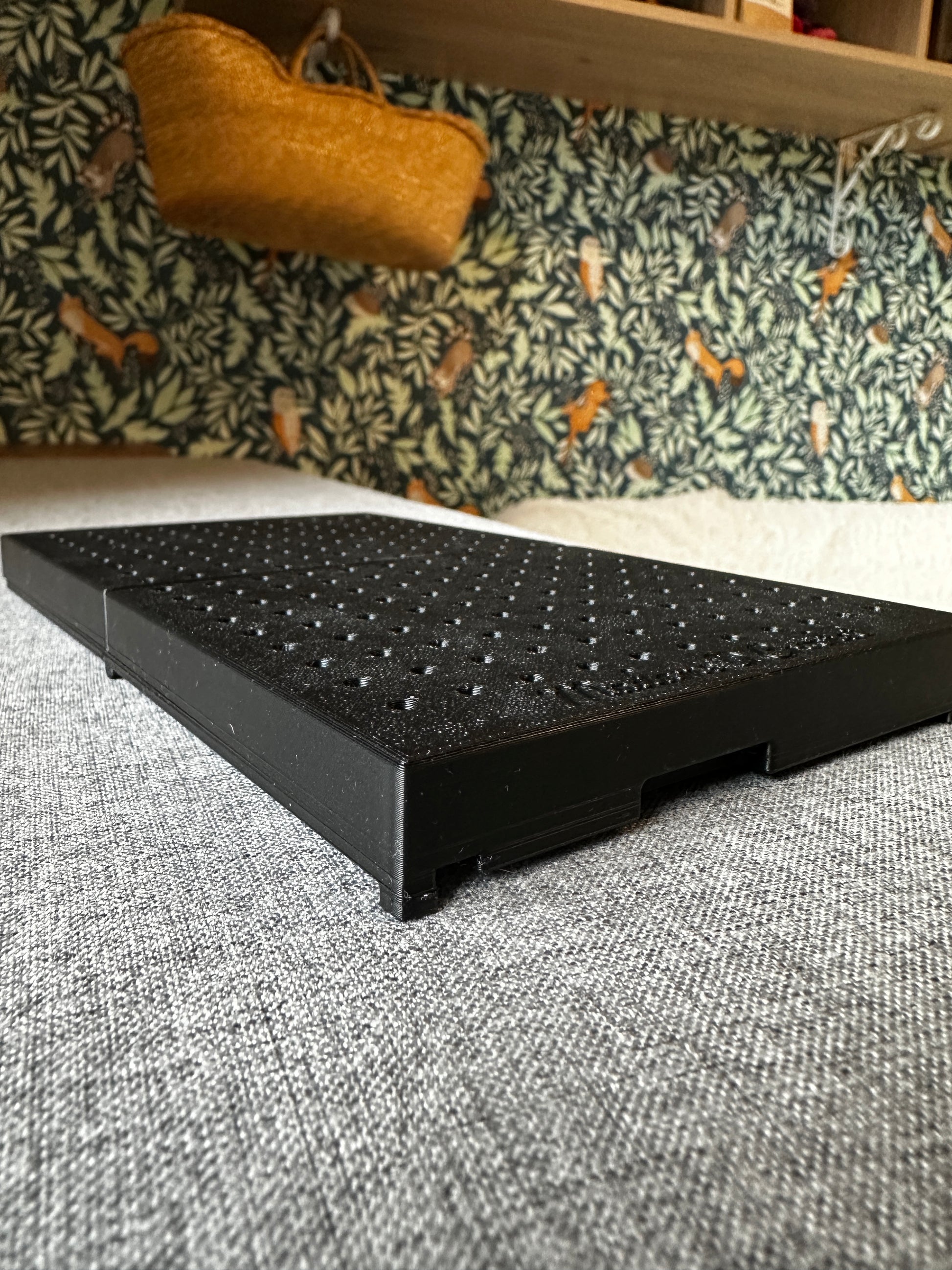 Une fois pliée, votre planche fait 10cmx12cm pour 3cm d’épaisseur. Lorsqu’elle est ouverte et posée à plat, votre planche fait 20cmx12cm pour 1,8cm d’épaisseur.