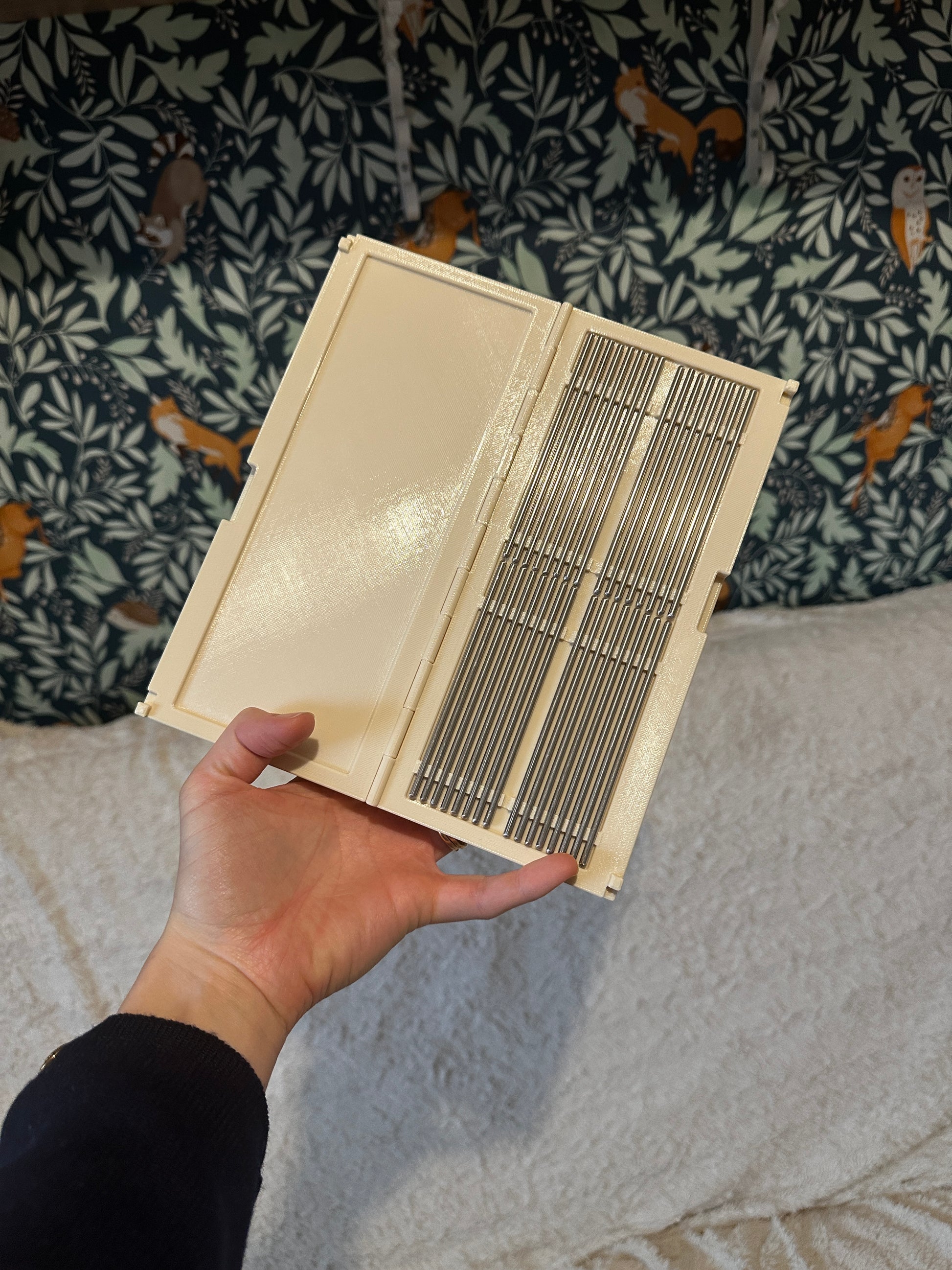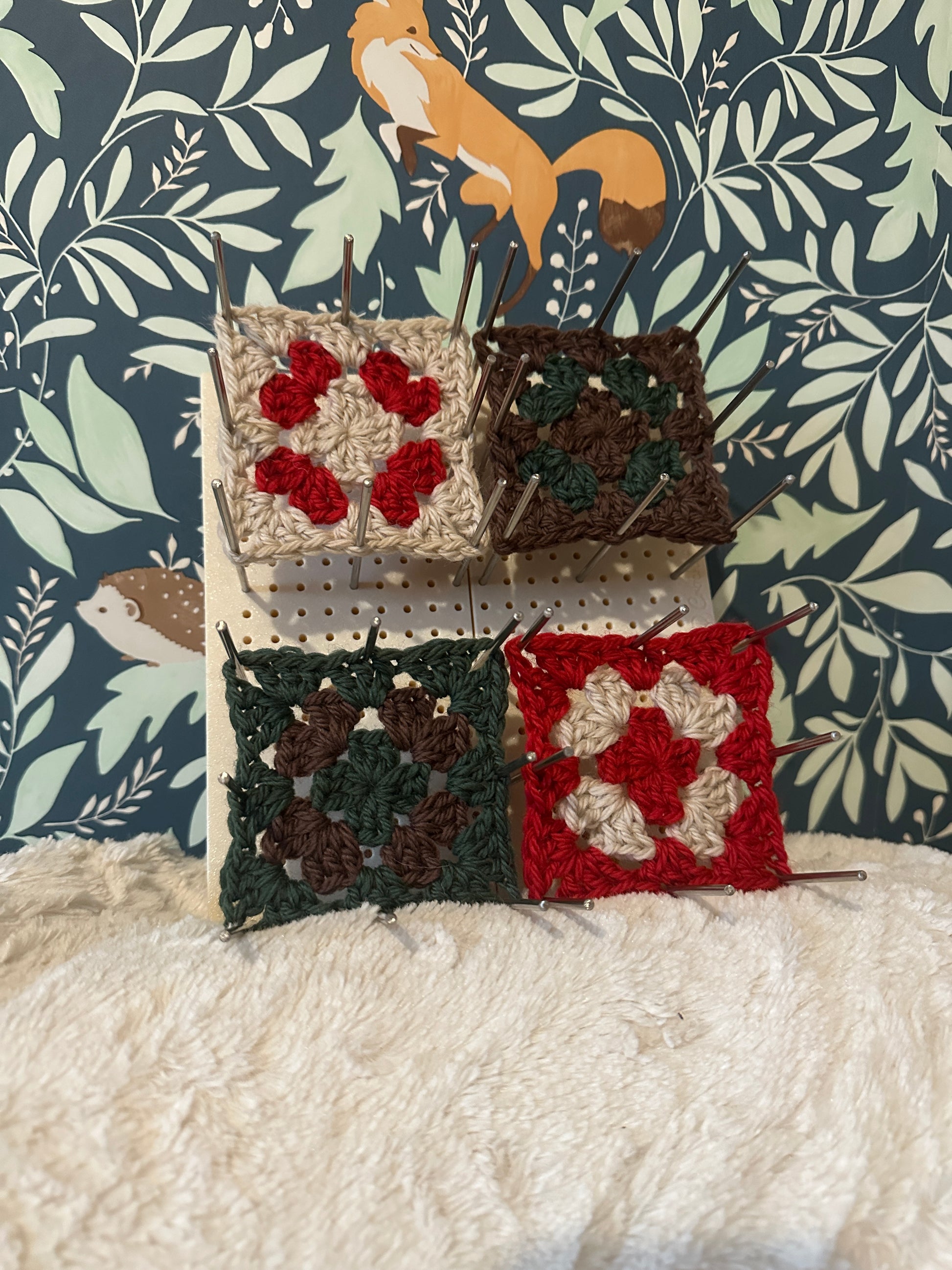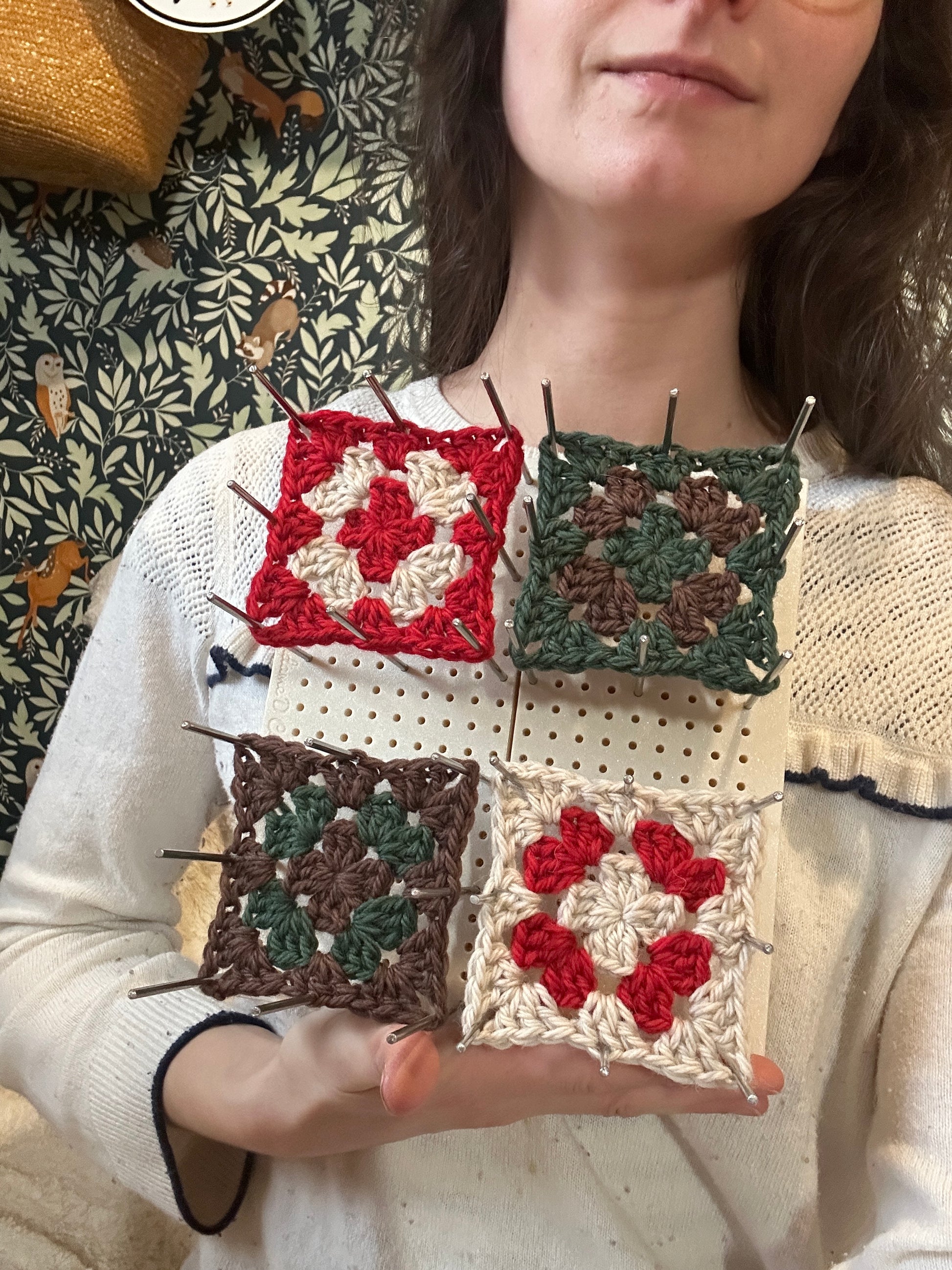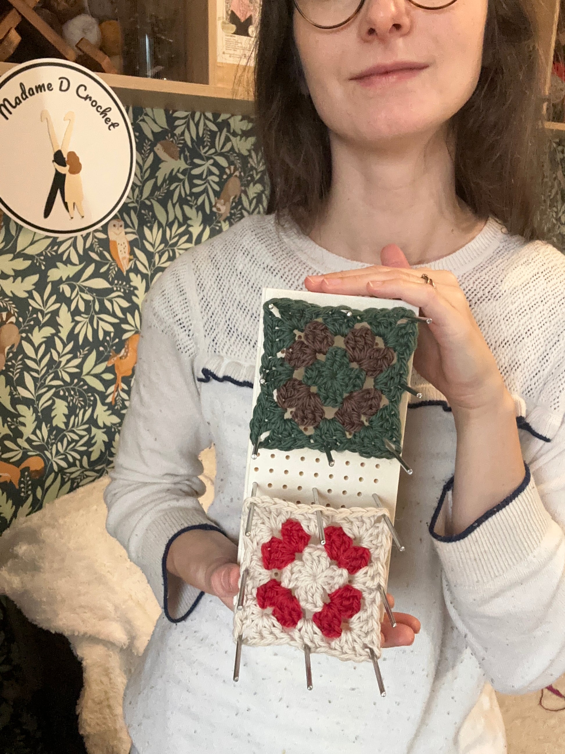 La planche de blocage pour granny squares Voyage possède un rangement pour les 32 barres en inox de 10cm chacune inclus. Vous pouvez utiliser la totalité de la planche en la dépliant complètement ou bien la laisser fermée pour utiliser la moitié de sa surface.